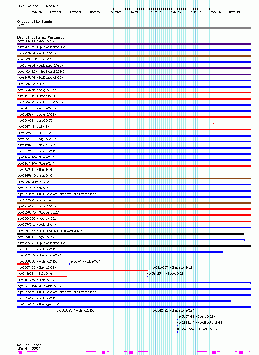 Variant DetailsVariant: nsv1076605| Internal ID | 19321974 | | Landmark | | | Location Information | | | Cytoband | 6q26 | | Allele length | | Assembly | Allele length | | hg38 | 11702 | | hg19 | 11702 |