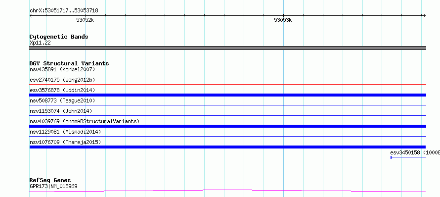 Variant DetailsVariant: nsv1076709| Internal ID | 18970591 | | Landmark | | | Location Information | | | Cytoband | Xp11.22 | | Allele length | | Assembly | Allele length | | hg38 | 2002 | | hg19 | 2002 |