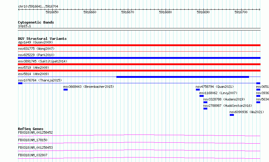 Variant DetailsVariant: nsv1076764| Internal ID | 19323500 | | Landmark | | | Location Information | | | Cytoband | 10p15.1 | | Allele length | | Assembly | Allele length | | hg38 | 64 | | hg19 | 64 |