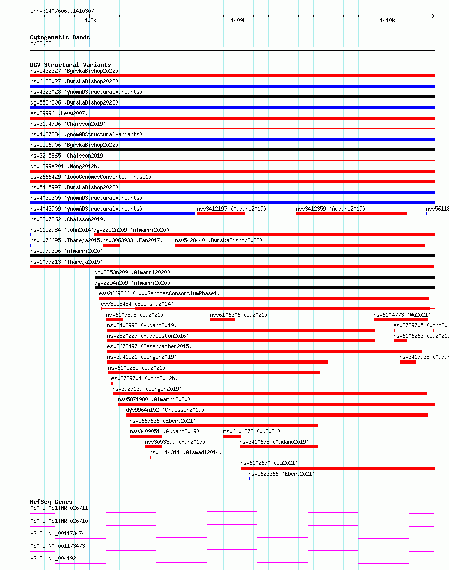 Variant DetailsVariant: nsv1077213| Internal ID | 19319212 | | Landmark | | | Location Information | | | Cytoband | Xp22.33 | | Allele length | | Assembly | Allele length | | hg38 | 2702 | | hg19 | 2702 |