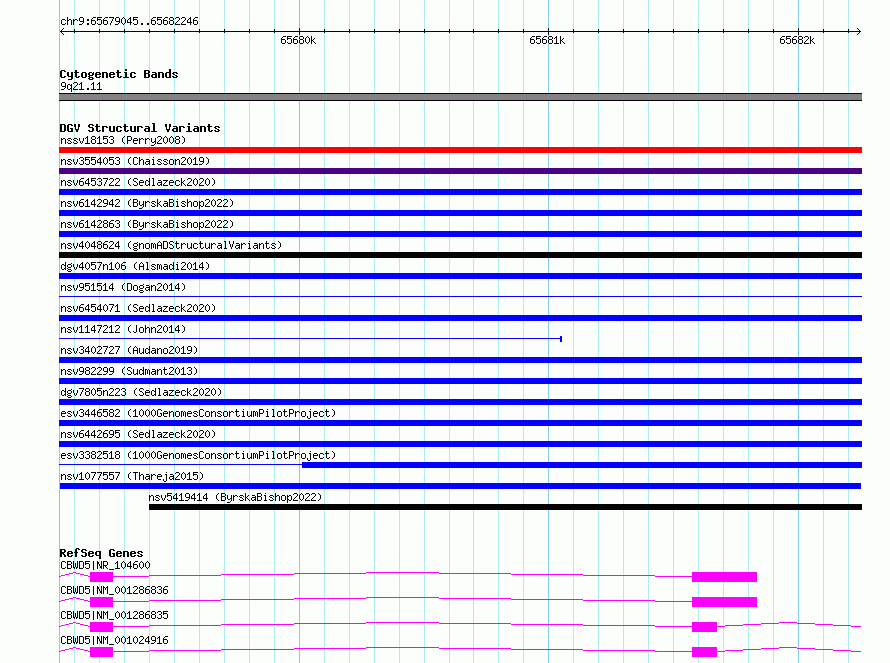 Variant DetailsVariant: nsv1077557| Internal ID | 19326581 | | Landmark | | | Location Information | | | Cytoband | 9q21.11 | | Allele length | | Assembly | Allele length | | hg38 | 3202 | | hg19 | 3202 |