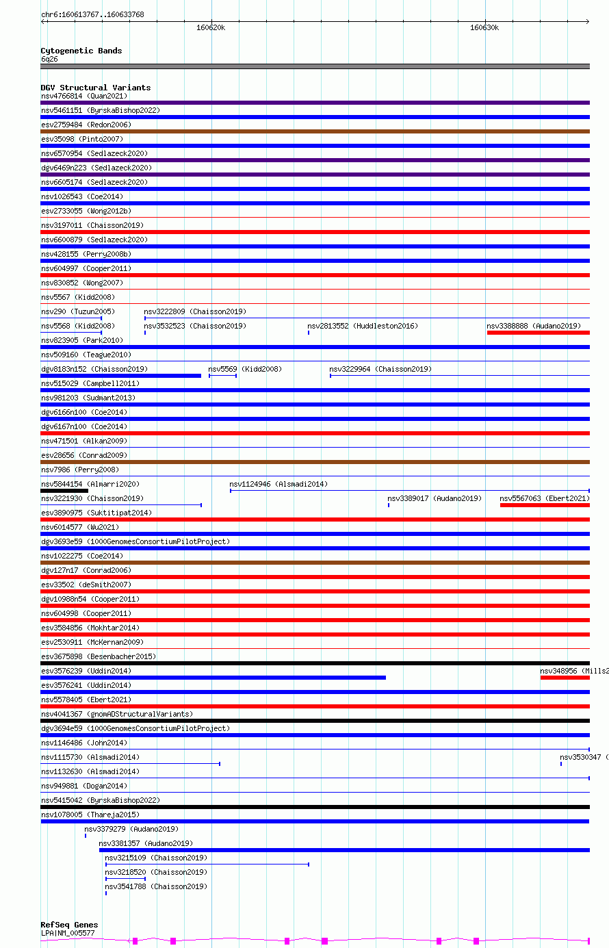 Variant DetailsVariant: nsv1078005| Internal ID | 19318121 | | Landmark | | | Location Information | | | Cytoband | 6q26 | | Allele length | | Assembly | Allele length | | hg38 | 20002 | | hg19 | 20002 |