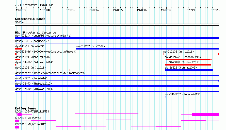Variant DetailsVariant: nsv1078093| Internal ID | 18969943 | | Landmark | | | Location Information | | | Cytoband | 9q34.3 | | Allele length | | Assembly | Allele length | | hg38 | 8402 | | hg19 | 8402 |