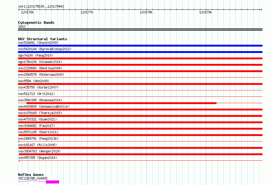 | | Variant Type | CNV deletion | | Copy Number | | | Allele State | | | Allele Origin | | | Probe Count | | | Validation Flag | | | Merged Status | M | | Merged Variants | | | Supporting Variants | nssv3769893 | | Samples | KWP1 | | Known Genes | LOC100288142, NBPF9, SEC22B | | Method | Sequencing | | Analysis | HugeSeq | | Platform | Illumina HiSeq 2000 | | Comments | | | Reference | Thareja_et_al_2015 | | Pubmed ID | 25765185 | | Accession Number(s) | nsv1078169
