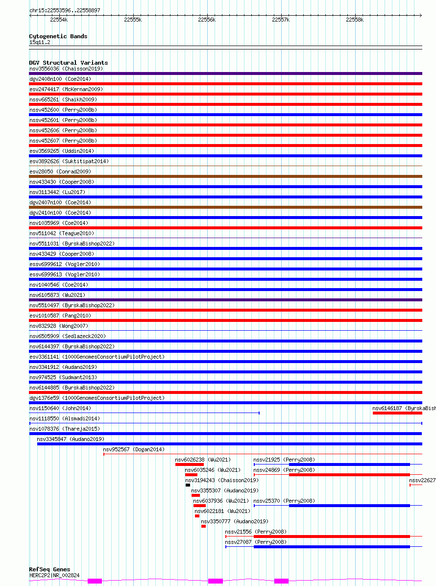 Variant DetailsVariant: nsv1078376| Internal ID | 19321086 | | Landmark | | | Location Information | | | Cytoband | 15q11.2 | | Allele length | | Assembly | Allele length | | hg38 | 5302 | | hg19 | 5302 |