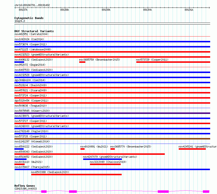 Variant DetailsVariant: nsv1078407| Internal ID | 19316052 | | Landmark | | | Location Information | | | Cytoband | 16q24.3 | | Allele length | | Assembly | Allele length | | hg38 | 4702 | | hg19 | 4702 |