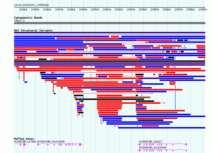 | | Variant Type | OTHER inversion | | Copy Number | | | Allele State | | | Allele Origin | | | Probe Count | | | Validation Flag | | | Merged Status | M | | Merged Variants | | | Supporting Variants | nssv3770171 | | Samples | KWP1 | | Known Genes | ACSM2A, ACSM2B, ACSM5 | | Method | Sequencing | | Analysis | HugeSeq | | Platform | Illumina HiSeq 2000 | | Comments | | | Reference | Thareja_et_al_2015 | | Pubmed ID | 25765185 | | Accession Number(s) | nsv1079028