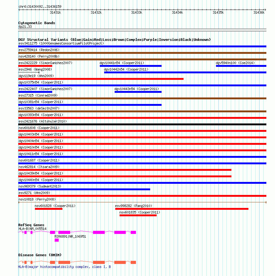 Variant DetailsVariant: nsv10818| Internal ID | 15845781 | | Landmark | | | Location Information | | | Cytoband | 6p21.33 | | Allele length | | Assembly | Allele length | | hg38 | 6068 | | hg19 | 6068 | | hg18 | 6068 | | hg17 | 6068 |