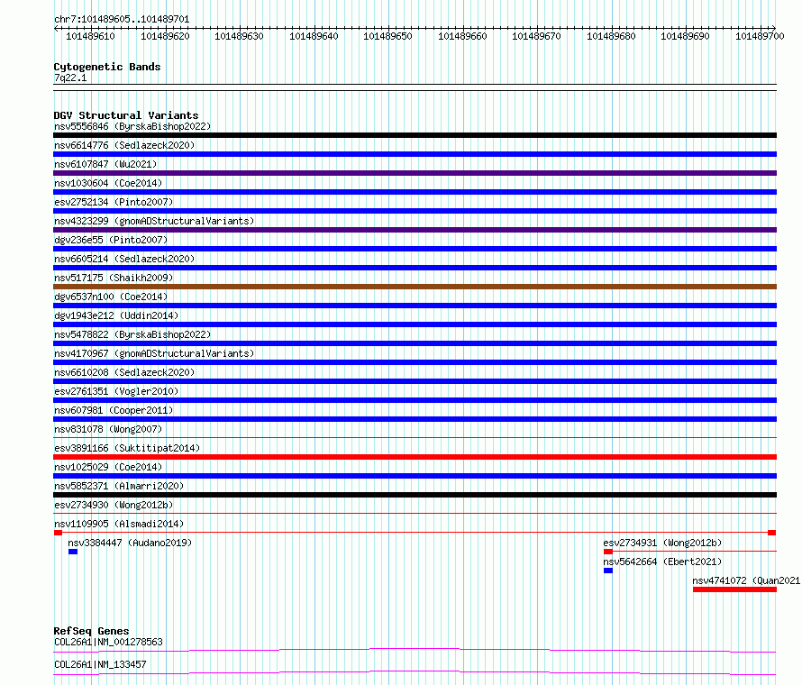 Variant DetailsVariant: nsv1109905| Internal ID | 19257680 | | Landmark | | | Location Information | | | Cytoband | 7q22.1 | | Allele length | | Assembly | Allele length | | hg38 | 97 | | hg19 | 97 |