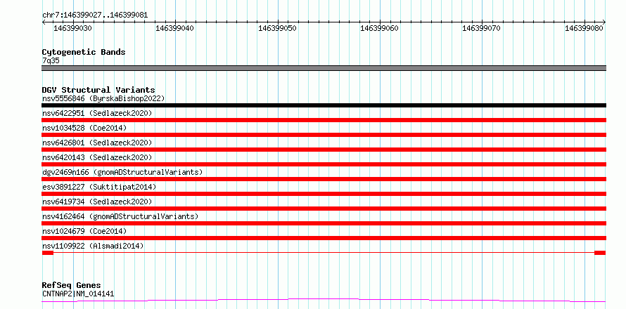 Variant DetailsVariant: nsv1109922| Internal ID | 19249747 | | Landmark | | | Location Information | | | Cytoband | 7q35 | | Allele length | | Assembly | Allele length | | hg38 | 55 | | hg19 | 55 |