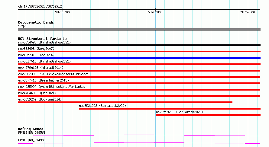 Variant DetailsVariant: nsv1109957| Internal ID | 19263594 | | Landmark | | | Location Information | | | Cytoband | Xq23 | | Allele length | | Assembly | Allele length | | hg38 | 261 | | hg19 | 290 |