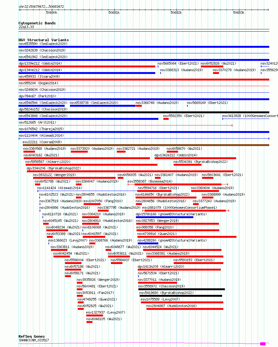 Variant DetailsVariant: nsv1110404| Internal ID | 19280949 | | Landmark | | | Location Information | | | Cytoband | 22q13.33 | | Allele length | | Assembly | Allele length | | hg38 | 4001 | | hg19 | 4001 |