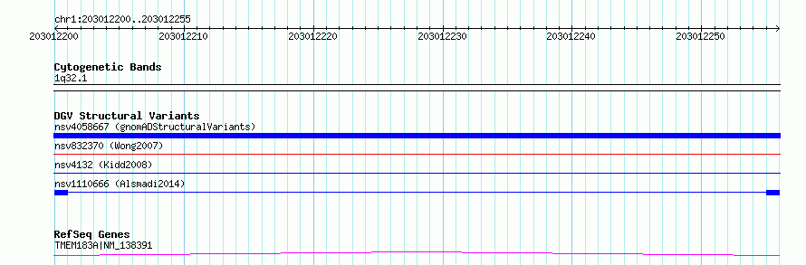 Variant DetailsVariant: nsv1110666| Internal ID | 19253728 | | Landmark | | | Location Information | | | Cytoband | 1q32.1 | | Allele length | | Assembly | Allele length | | hg38 | 56 | | hg19 | 56 |
