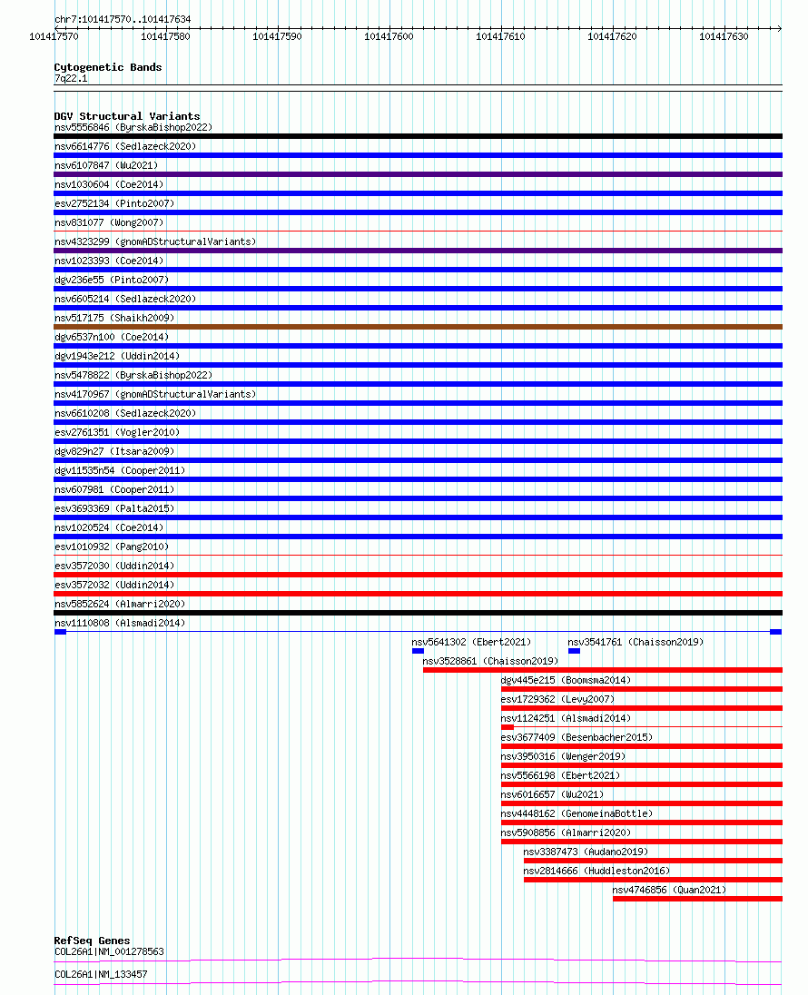 Variant DetailsVariant: nsv1110808| Internal ID | 19282974 | | Landmark | | | Location Information | | | Cytoband | 7q22.1 | | Allele length | | Assembly | Allele length | | hg38 | 65 | | hg19 | 65 |