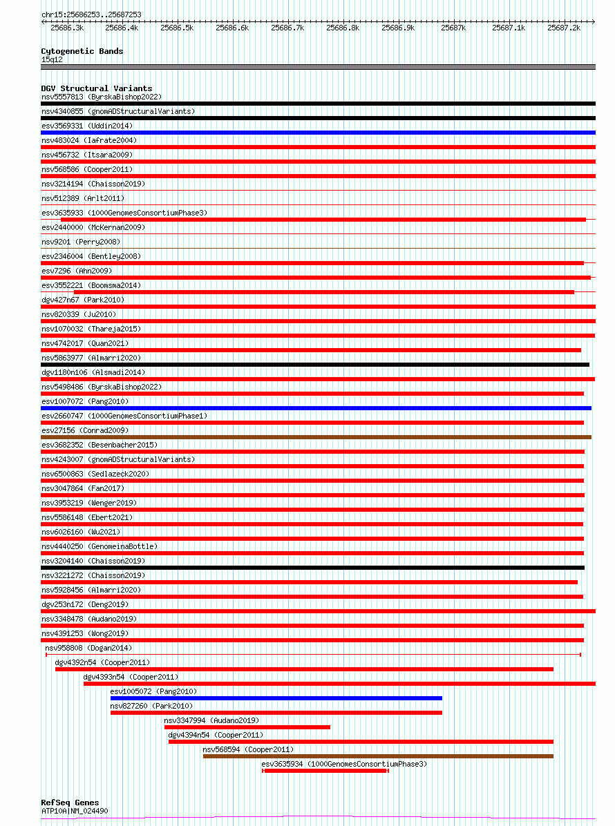 Variant DetailsVariant: nsv1111786| Internal ID | 19264138 | | Landmark | | | Location Information | | | Cytoband | 15q12 | | Allele length | | Assembly | Allele length | | hg38 | 1001 | | hg19 | 1001 |