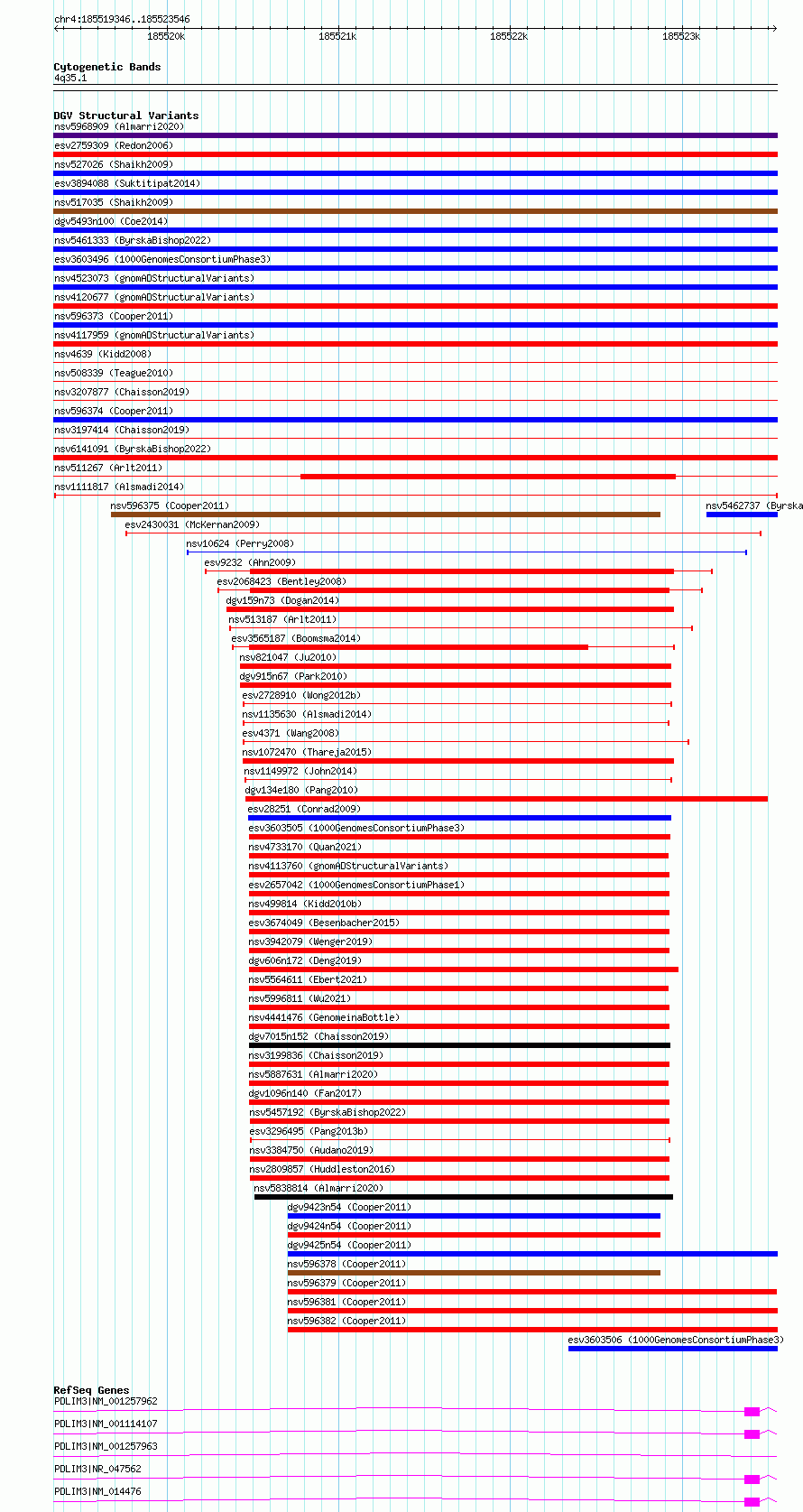 Variant DetailsVariant: nsv1111817| Internal ID | 19266711 | | Landmark | | | Location Information | | | Cytoband | 4q35.1 | | Allele length | | Assembly | Allele length | | hg38 | 4201 | | hg19 | 4201 |