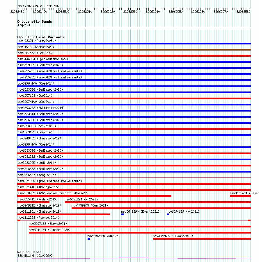 Variant DetailsVariant: nsv1112298| Internal ID | 19286718 | | Landmark | | | Location Information | | | Cytoband | 17q25.3 | | Allele length | | Assembly | Allele length | | hg38 | 103 | | hg19 | 103 |