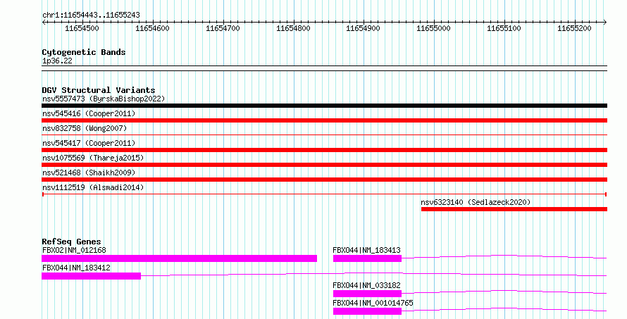 Variant DetailsVariant: nsv1112519| Internal ID | 19253186 | | Landmark | | | Location Information | | | Cytoband | 1p36.22 | | Allele length | | Assembly | Allele length | | hg38 | 801 | | hg19 | 801 |