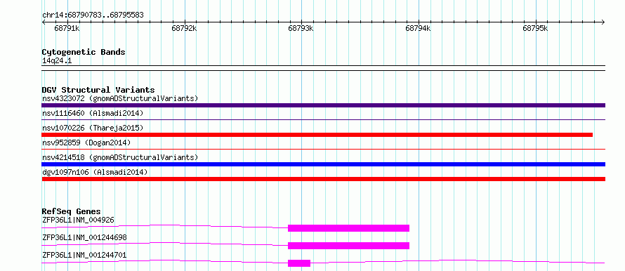 Variant DetailsVariant: nsv1112647| Internal ID | 18904026 | | Landmark | | | Location Information | | | Cytoband | 14q24.1 | | Allele length | | Assembly | Allele length | | hg38 | 4801 | | hg19 | 4801 |