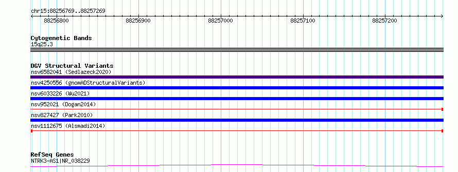 Variant DetailsVariant: nsv1112675| Internal ID | 19276271 | | Landmark | | | Location Information | | | Cytoband | 15q25.3 | | Allele length | | Assembly | Allele length | | hg38 | 501 | | hg19 | 501 |
