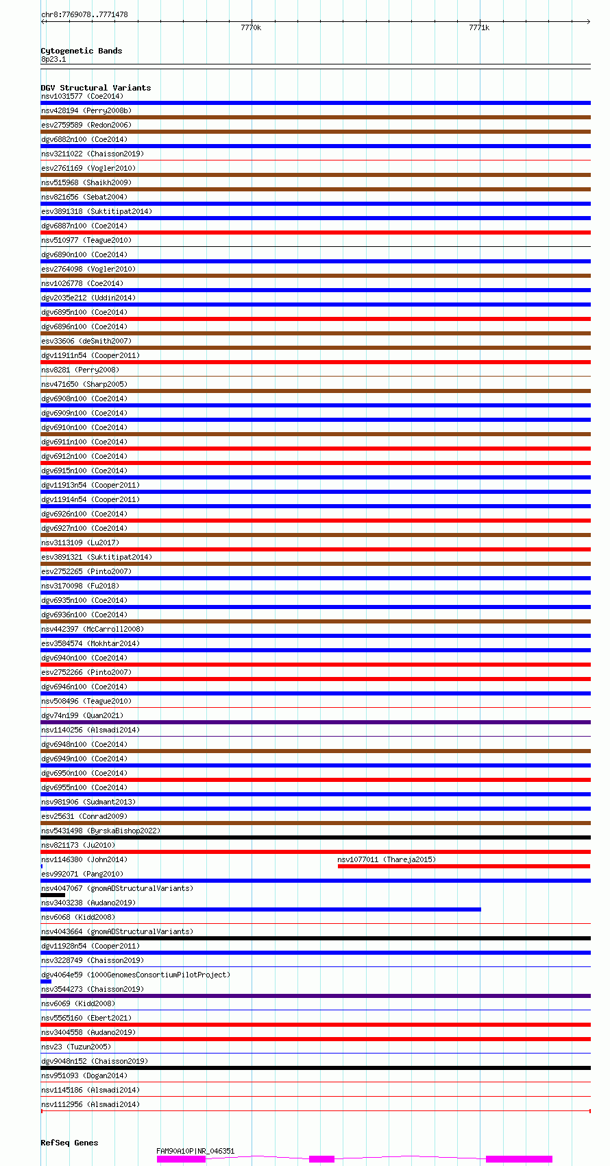 Variant DetailsVariant: nsv1112956| Internal ID | 19278942 | | Landmark | | | Location Information | | | Cytoband | 8p23.1 | | Allele length | | Assembly | Allele length | | hg38 | 2401 | | hg19 | 2401 |