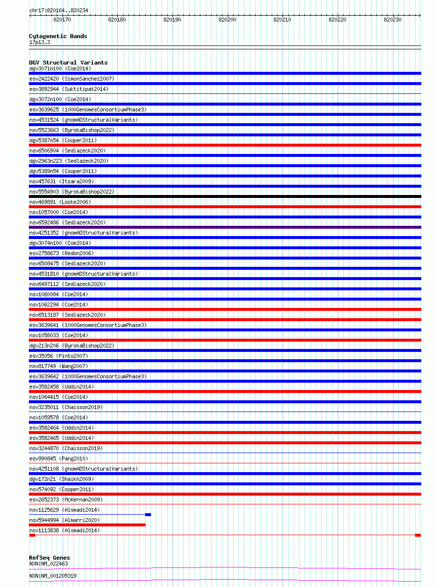 Variant DetailsVariant: nsv1113838| Internal ID | 19263128 | | Landmark | | | Location Information | | | Cytoband | 17p13.3 | | Allele length | | Assembly | Allele length | | hg38 | 71 | | hg19 | 71 |