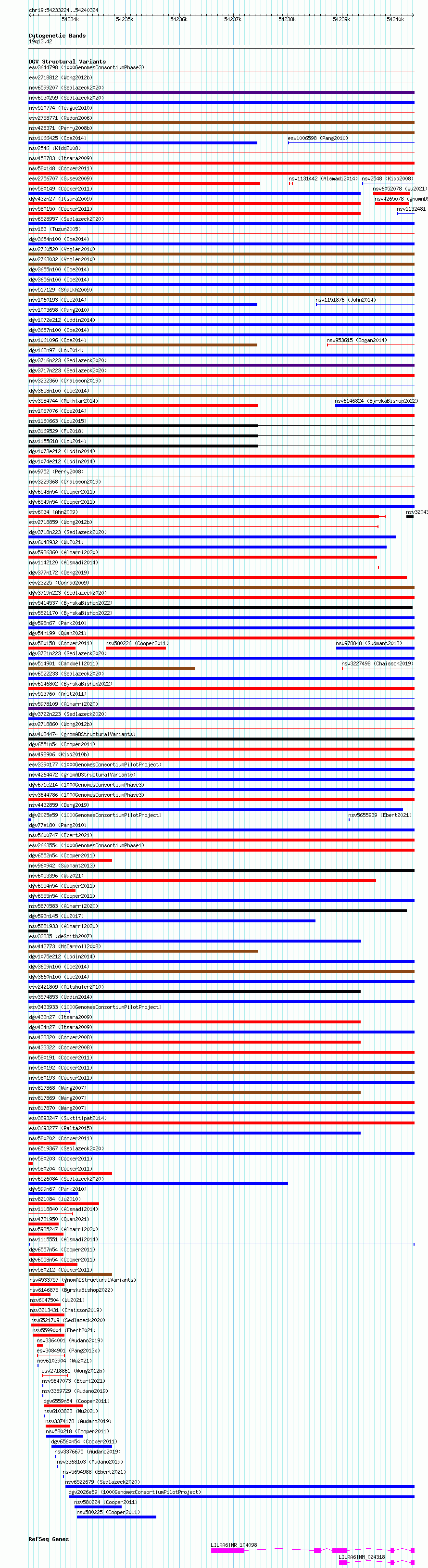 Variant DetailsVariant: nsv1115551| Internal ID | 19265776 | | Landmark | | | Location Information | | | Cytoband | 19q13.42 | | Allele length | | Assembly | Allele length | | hg38 | 7101 | | hg19 | 7101 |