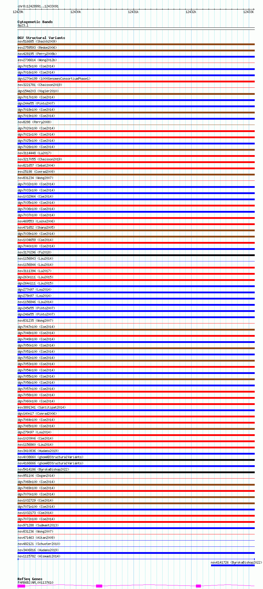 Variant DetailsVariant: nsv1115782| Internal ID | 19268499 | | Landmark | | | Location Information | | | Cytoband | 8p23.1 | | Allele length | | Assembly | Allele length | | hg38 | 4101 | | hg19 | 4101 |