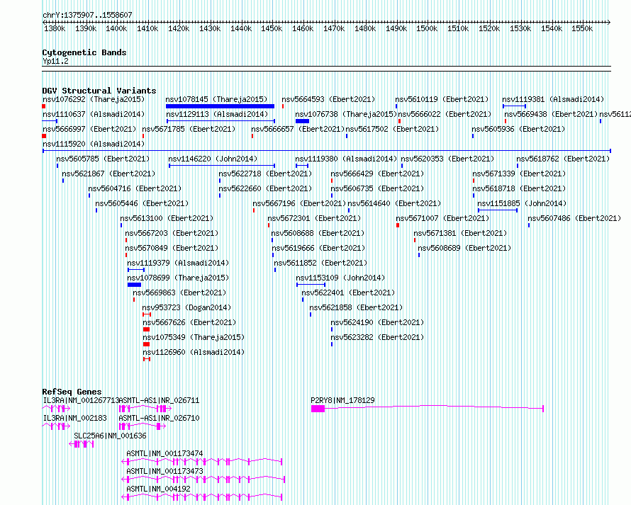 Variant DetailsVariant: nsv1115920| Internal ID | 19286259 | | Landmark | | | Location Information | | | Cytoband | Yp11.32 | | Allele length | | Assembly | Allele length | | hg38 | 182701 | | hg19 | 182701 |