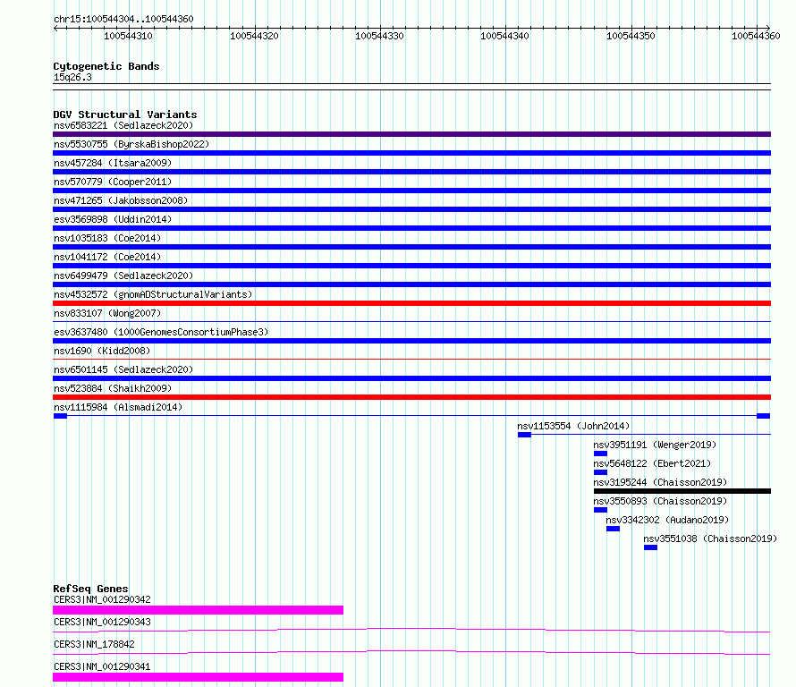 Variant DetailsVariant: nsv1115984| Internal ID | 19252954 | | Landmark | | | Location Information | | | Cytoband | 15q26.3 | | Allele length | | Assembly | Allele length | | hg38 | 57 | | hg19 | 57 |