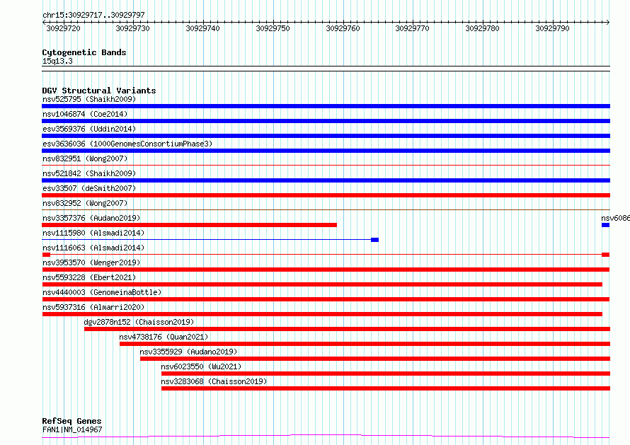 Variant DetailsVariant: nsv1116063| Internal ID | 19253335 | | Landmark | | | Location Information | | | Cytoband | 15q13.3 | | Allele length | | Assembly | Allele length | | hg38 | 81 | | hg19 | 81 |