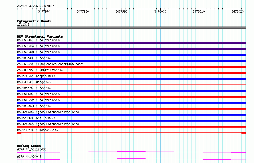 Variant DetailsVariant: nsv1116180| Internal ID | 19255721 | | Landmark | | | Location Information | | | Cytoband | 17p13.2 | | Allele length | | Assembly | Allele length | | hg38 | 59 | | hg19 | 59 |