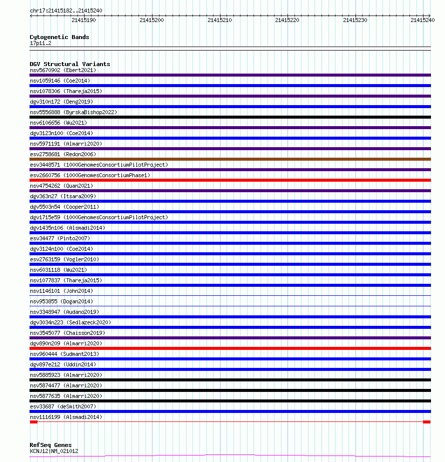 Variant DetailsVariant: nsv1116199| Internal ID | 19266659 | | Landmark | | | Location Information | | | Cytoband | 17p11.2 | | Allele length | | Assembly | Allele length | | hg38 | 59 | | hg19 | 59 |