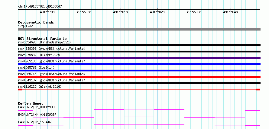 Variant DetailsVariant: nsv1116225| Internal ID | 19270740 | | Landmark | | | Location Information | | | Cytoband | 17q21.32 | | Allele length | | Assembly | Allele length | | hg38 | 66 | | hg19 | 66 |
