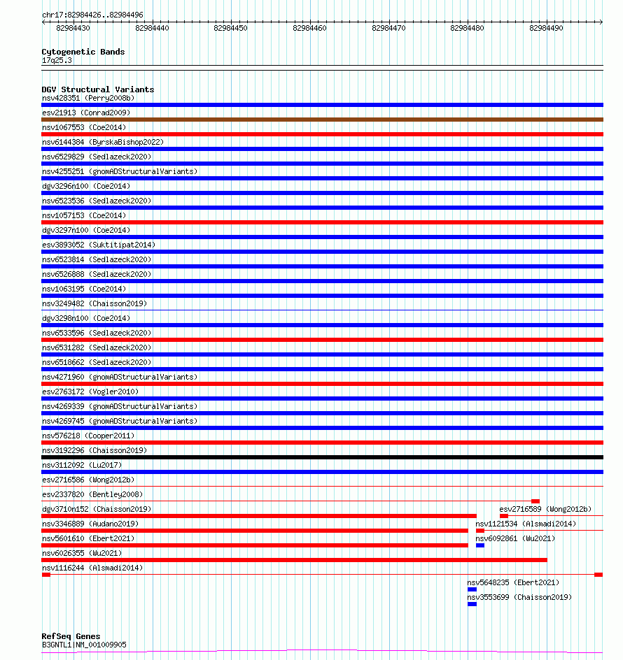 Variant DetailsVariant: nsv1116244| Internal ID | 19271441 | | Landmark | | | Location Information | | | Cytoband | 17q25.3 | | Allele length | | Assembly | Allele length | | hg38 | 71 | | hg19 | 71 |