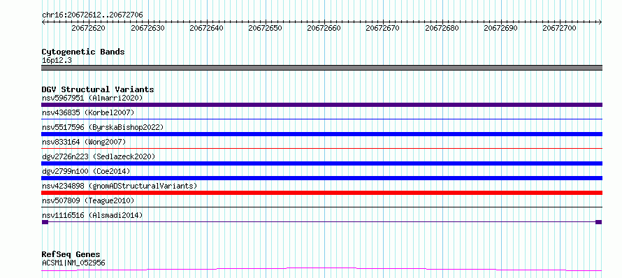 Variant DetailsVariant: nsv1116516| Internal ID | 19284299 | | Landmark | | | Location Information | | | Cytoband | 16p12.3 | | Allele length | | Assembly | Allele length | | hg38 | 95 | | hg19 | 95 |