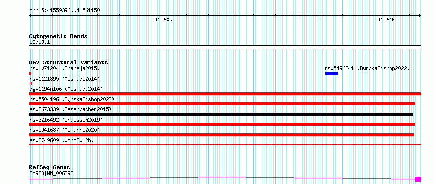 Variant DetailsVariant: nsv1117994| Internal ID | 19258023 | | Landmark | | | Location Information | | | Cytoband | 15q15.1 | | Allele length | | Assembly | Allele length | | hg38 | 1755 | | hg19 | 1755 |