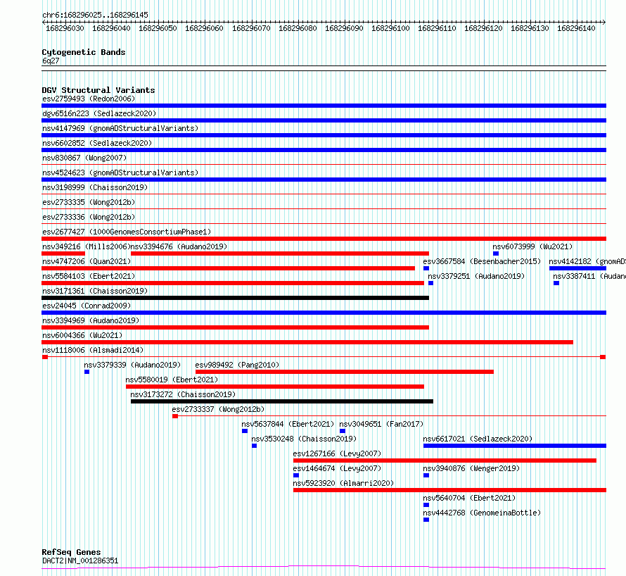 Variant DetailsVariant: nsv1118006| Internal ID | 19266301 | | Landmark | | | Location Information | | | Cytoband | 6q27 | | Allele length | | Assembly | Allele length | | hg38 | 121 | | hg19 | 121 |