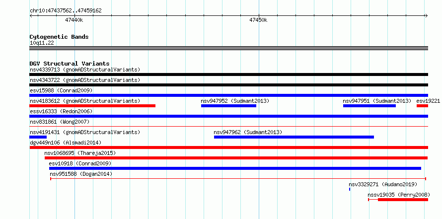 | Variant Type | CNV deletion | Copy Number | | Allele State | | Allele Origin | | Probe Count | | Validation Flag | | Merged Status | M | Merged Variants | dgv449n106 | Supporting Variants | nssv3980841 | Samples | KWS1 | Known Genes | | Method | Sequencing | Analysis | HugeSeq | Platform | Illumina HiSeq 2000 | Comments | | Reference | Alsmadi_et_al_2014 | Pubmed ID | 24896259 | Accession Number(s) | nsv1118174