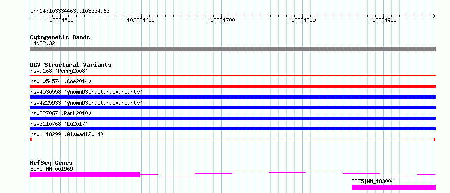 Variant DetailsVariant: nsv1118299| Internal ID | 19269848 | | Landmark | | | Location Information | | | Cytoband | 14q32.32 | | Allele length | | Assembly | Allele length | | hg38 | 501 | | hg19 | 501 |