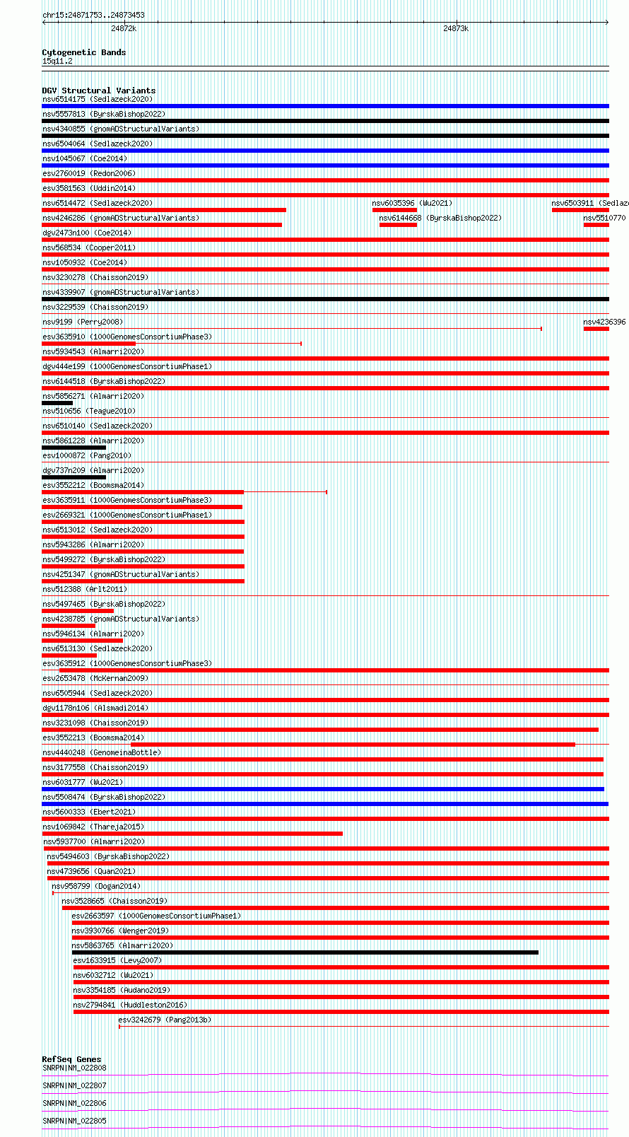 Variant DetailsVariant: nsv1118310| Internal ID | 19284729 | | Landmark | | | Location Information | | | Cytoband | 15q11.2 | | Allele length | | Assembly | Allele length | | hg38 | 1701 | | hg19 | 1701 |