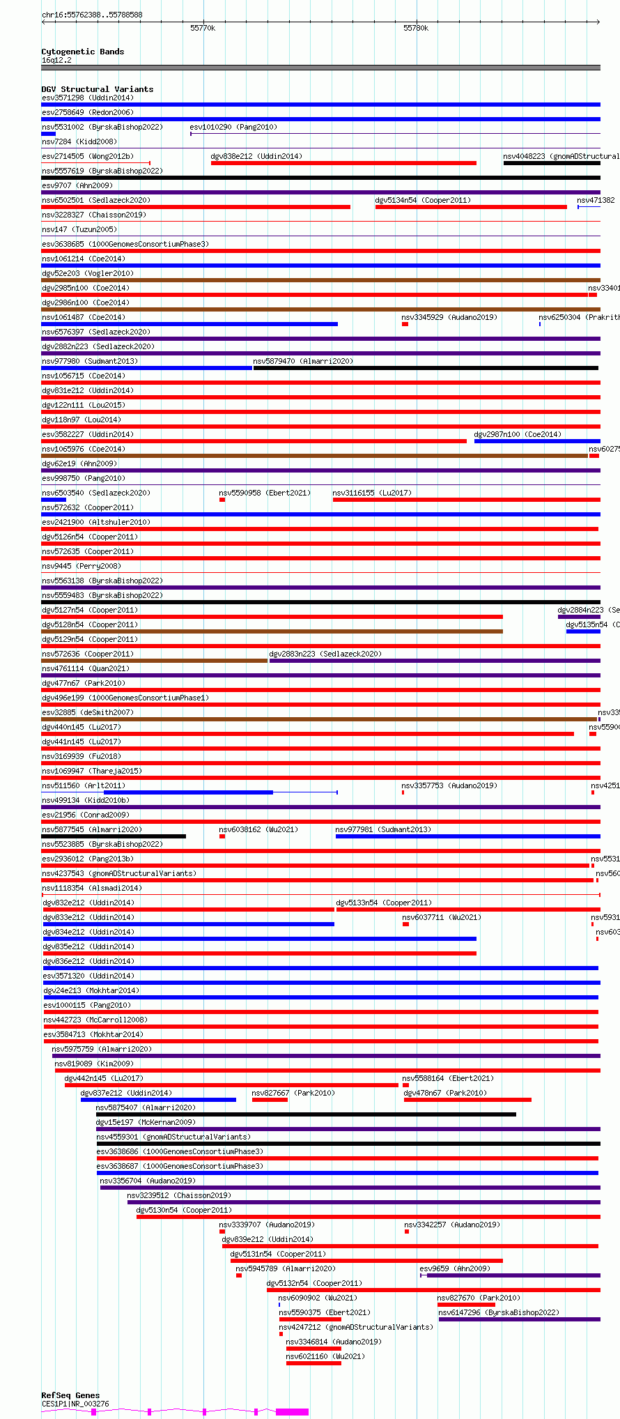 Variant DetailsVariant: nsv1118354| Internal ID | 19259620 | | Landmark | | | Location Information | | | Cytoband | 16q12.2 | | Allele length | | Assembly | Allele length | | hg38 | 26201 | | hg19 | 26201 |