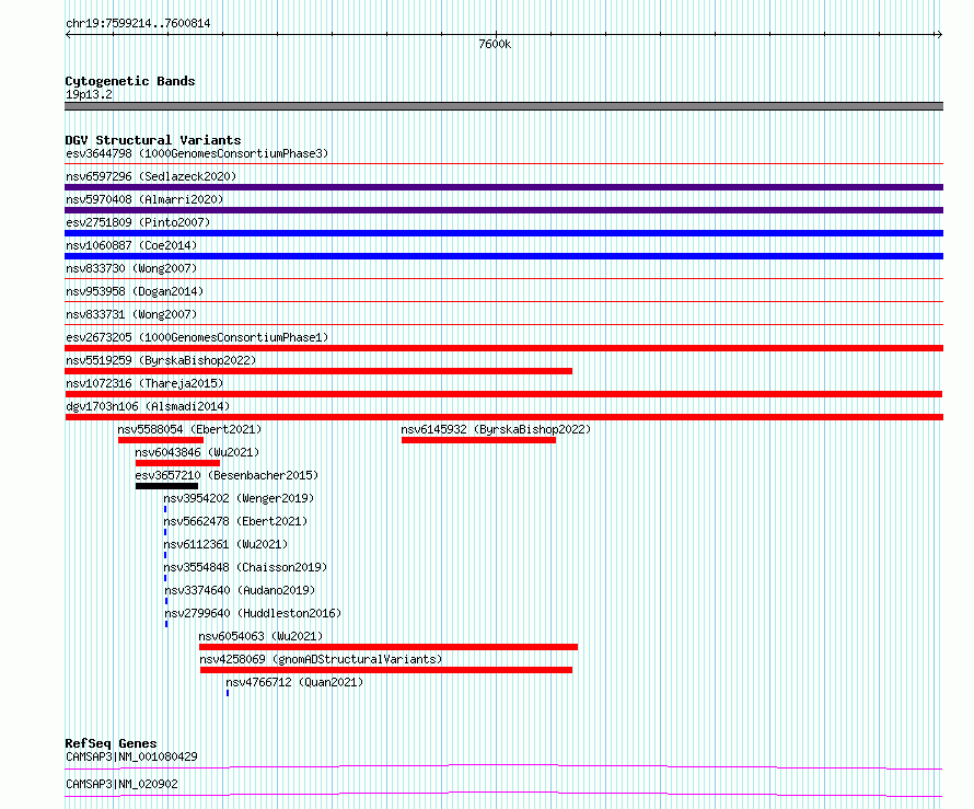 Variant DetailsVariant: nsv1118812| Internal ID | 19261912 | | Landmark | | | Location Information | | | Cytoband | 19p13.2 | | Allele length | | Assembly | Allele length | | hg38 | 1601 | | hg19 | 1601 |
