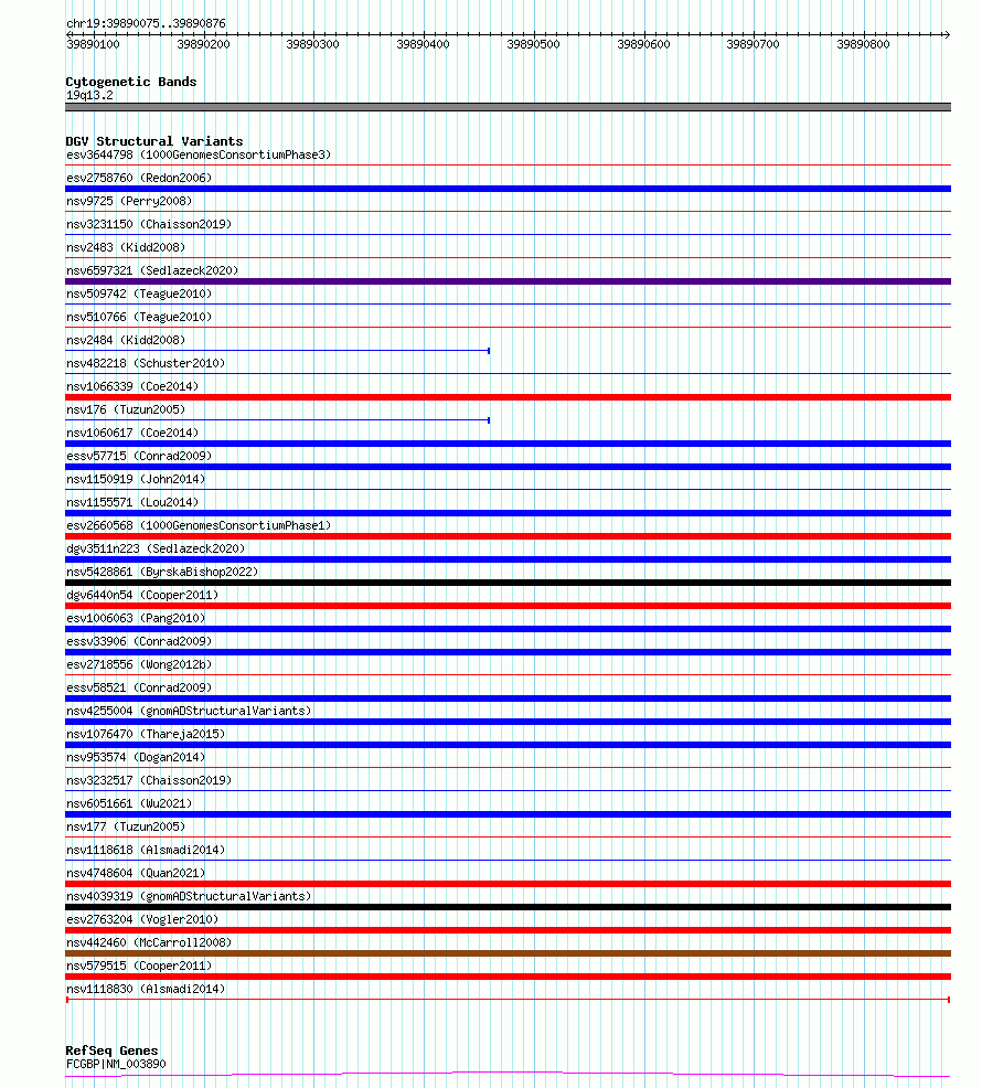 Variant DetailsVariant: nsv1118830| Internal ID | 19273816 | | Landmark | | | Location Information | | | Cytoband | 19q13.2 | | Allele length | | Assembly | Allele length | | hg38 | 802 | | hg19 | 801 |