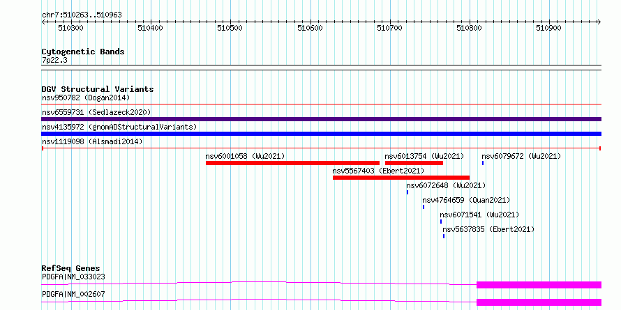 | | Variant Type | CNV deletion | | Copy Number | | | Allele State | | | Allele Origin | | | Probe Count | | | Validation Flag | | | Merged Status | M | | Merged Variants | | | Supporting Variants | nssv3981900 | | Samples | KWS1 | | Known Genes | PDGFA | | Method | Sequencing | | Analysis | HugeSeq | | Platform | Illumina HiSeq 2000 | | Comments | | | Reference | Alsmadi_et_al_2014 | | Pubmed ID | 24896259 | | Accession Number(s) | nsv1119098