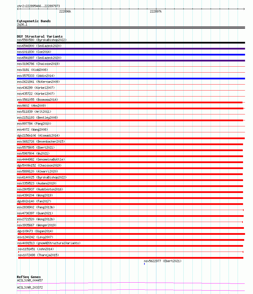 Variant DetailsVariant: nsv1119150| Internal ID | 19265542 | | Landmark | | | Location Information | | | Cytoband | 2q36.1 | | Allele length | | Assembly | Allele length | | hg38 | 2508 | | hg19 | 2508 |