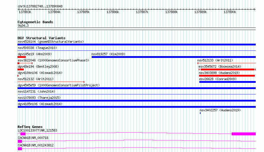 Variant DetailsVariant: nsv1119319| Internal ID | 18931713 | | Landmark | | | Location Information | | | Cytoband | 9q34.3 | | Allele length | | Assembly | Allele length | | hg38 | 8101 | | hg19 | 8101 |
