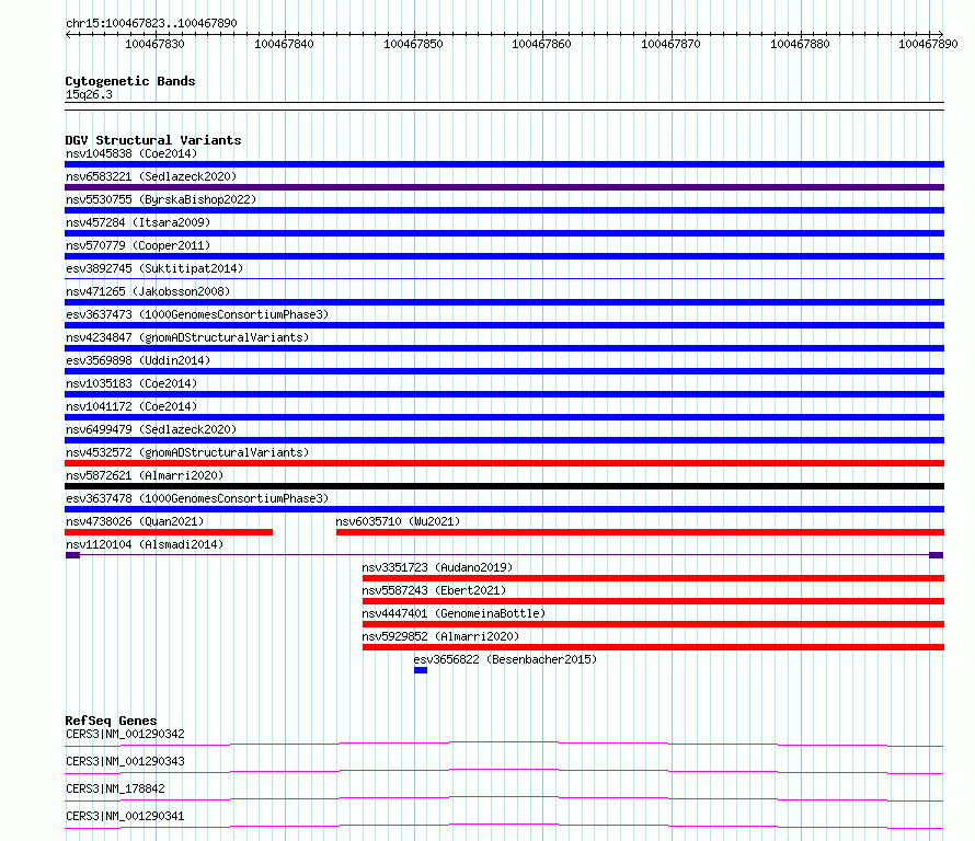 | | Variant Type | OTHER inversion | | Copy Number | | | Allele State | | | Allele Origin | | | Probe Count | | | Validation Flag | | | Merged Status | M | | Merged Variants | | | Supporting Variants | nssv3960854 | | Samples | KWS1 | | Known Genes | CERS3 | | Method | Sequencing | | Analysis | HugeSeq | | Platform | Illumina HiSeq 2000 | | Comments | | | Reference | Alsmadi_et_al_2014 | | Pubmed ID | 24896259 | | Accession Number(s) | nsv1120104