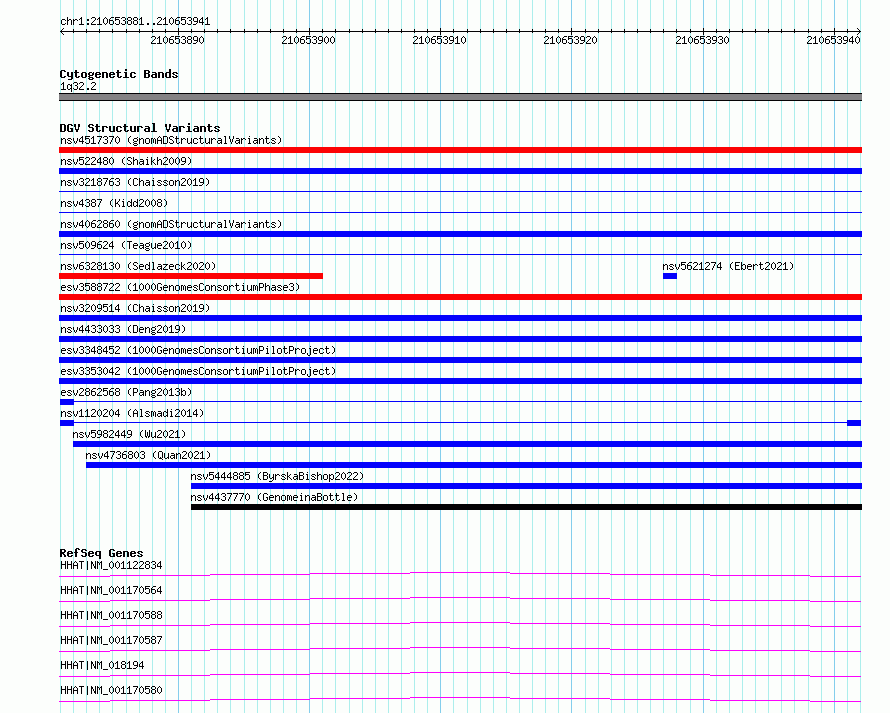 Variant DetailsVariant: nsv1120204| Internal ID | 19260300 | | Landmark | | | Location Information | | | Cytoband | 1q32.2 | | Allele length | | Assembly | Allele length | | hg38 | 61 | | hg19 | 61 |