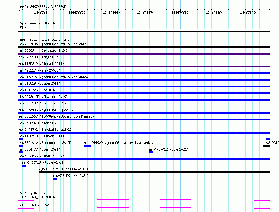 Variant DetailsVariant: nsv1120579| Internal ID | 19259308 | | Landmark | | | Location Information | | | Cytoband | 9q34.3 | | Allele length | | Assembly | Allele length | | hg38 | 73 | | hg19 | 73 |